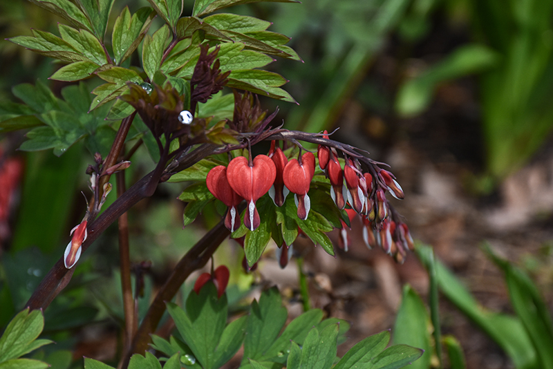 Valentine Bleeding Heart features delicate nodding cherry red heart-shaped flowers with white centers dangling from the stems from late spring to early summer. Its ferny compound leaves remain grayish green in color throughout the season.