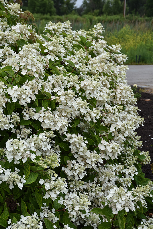 Fire And Ice® Hydrangea features bold conical white flowers with shell pink overtones at the ends of the branches from mid summer to late fall. The flowers are excellent for cutting. It has green deciduous foliage. The pointy leaves do not develop any appreciable fall color.