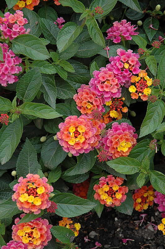 Landmark Sunrise Rose Lantana is a multi-stemmed annual with a more or less rounded form. Its medium texture blends into the garden, but can always be balanced by a couple of finer or coarser plants for an effective composition.
