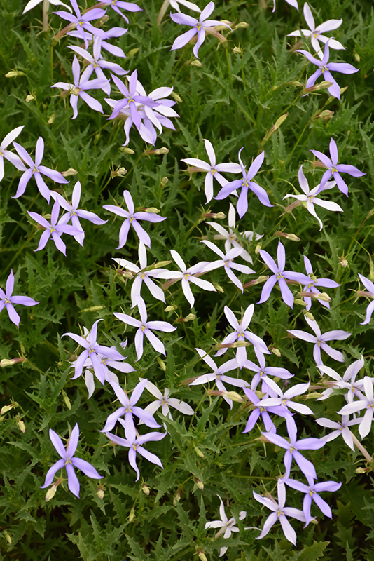 Starshine Blue Laurentia features showy powder blue star-shaped flowers with lavender overtones rising above the foliage from late spring to early fall. Its attractive deeply cut ferny leaves remain dark green in color throughout the season.