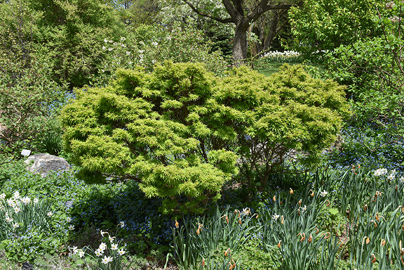 Sharp's Pygmy Japanese Maple will grow to be about 4 feet tall at maturity, with a spread of 4 feet. It has a low canopy. It grows at a slow rate, and under ideal conditions can be expected to live for 60 years or more.