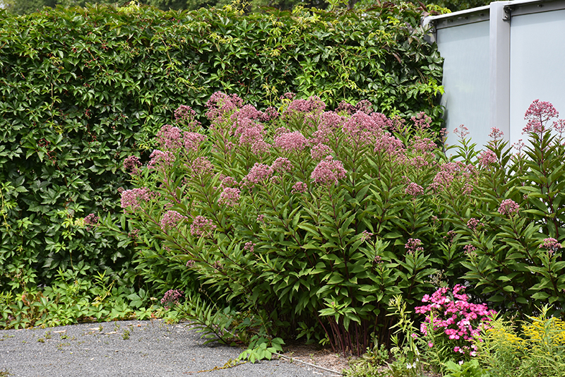Gateway Joe Pye Weed is an herbaceous perennial with an upright spreading habit of growth. Its wonderfully bold, coarse texture can be very effective in a balanced garden composition.
