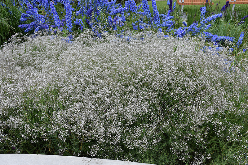 Common Baby's Breath will grow to be about 3 feet tall at maturity, with a spread of 3 feet. Its foliage tends to remain dense right to the ground, not requiring facer plants in front. It grows at a fast rate, and under ideal conditions can be expected to live for approximately 10 years. As an herbaceous perennial, this plant will usually die back to the crown each winter, and will regrow from the base each spring. Be careful not to disturb the crown in late winter when it may not be readily seen!