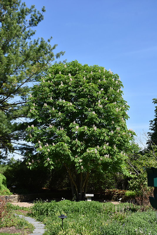 Red Horse Chestnut will grow to be about 40 feet tall at maturity, with a spread of 40 feet. It has a low canopy with a typical clearance of 4 feet from the ground, and should not be planted underneath power lines. It grows at a medium rate, and under ideal conditions can be expected to live for 60 years or more.