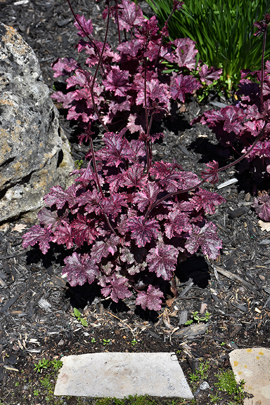 Midnight Rose Coral Bells will grow to be about 10 inches tall at maturity extending to 15 inches tall with the flowers, with a spread of 18 inches. When grown in masses or used as a bedding plant, individual plants should be spaced approximately 15 inches apart. Its foliage tends to remain low and dense right to the ground. It grows at a medium rate, and under ideal conditions can be expected to live for approximately 10 years. As an evegreen perennial, this plant will typically keep its form and foliage year-round.