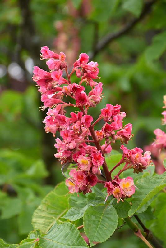 Ruby Red Horse Chestnut features bold spikes of ruby-red flowers rising above the foliage in mid spring. It has dark green deciduous foliage which emerges light green in spring. The palmate leaves turn yellow in fall. However, the fruit can be messy in the landscape and may require occasional clean-up.