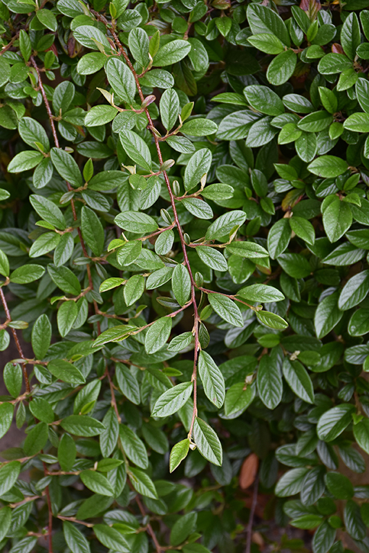 Scarlet Leader Willowleaf Cotoneaster is primarily valued in the garden for its broadly spreading habit of growth. It features tiny clusters of white flowers along the branches in late spring. It has dark green evergreen foliage. The small glossy narrow leaves turn an outstanding brick red in the fall, which persists throughout the winter.