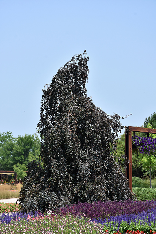 Purple Fountain Beech will grow to be about 30 feet tall at maturity, with a spread of 15 feet. It has a low canopy with a typical clearance of 1 foot from the ground, and should not be planted underneath power lines. It grows at a slow rate, and under ideal conditions can be expected to live to a ripe old age of 120 years or more; think of this as a heritage tree for future generations!