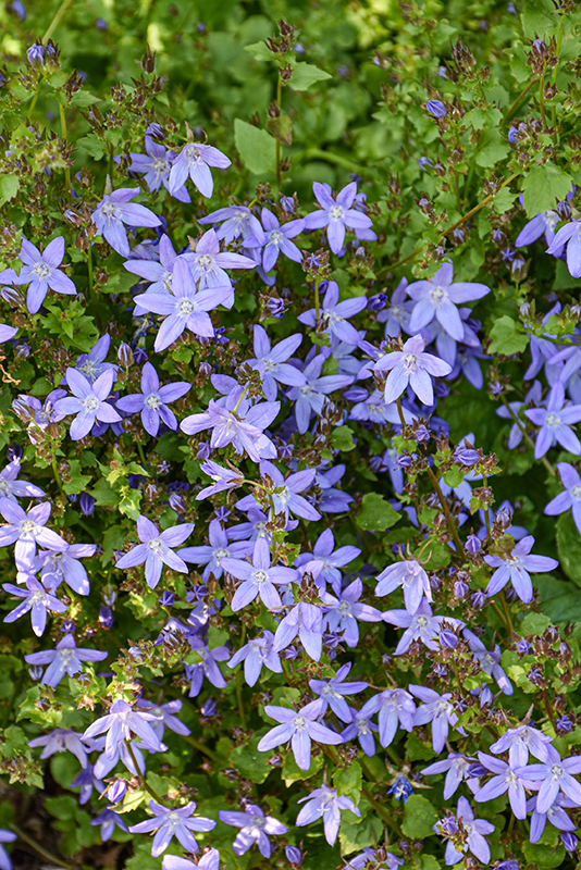 Serbian Bellflower is smothered in stunning blue star-shaped flowers at the ends of the stems from late spring to mid summer. Its small round leaves remain green in color throughout the season.